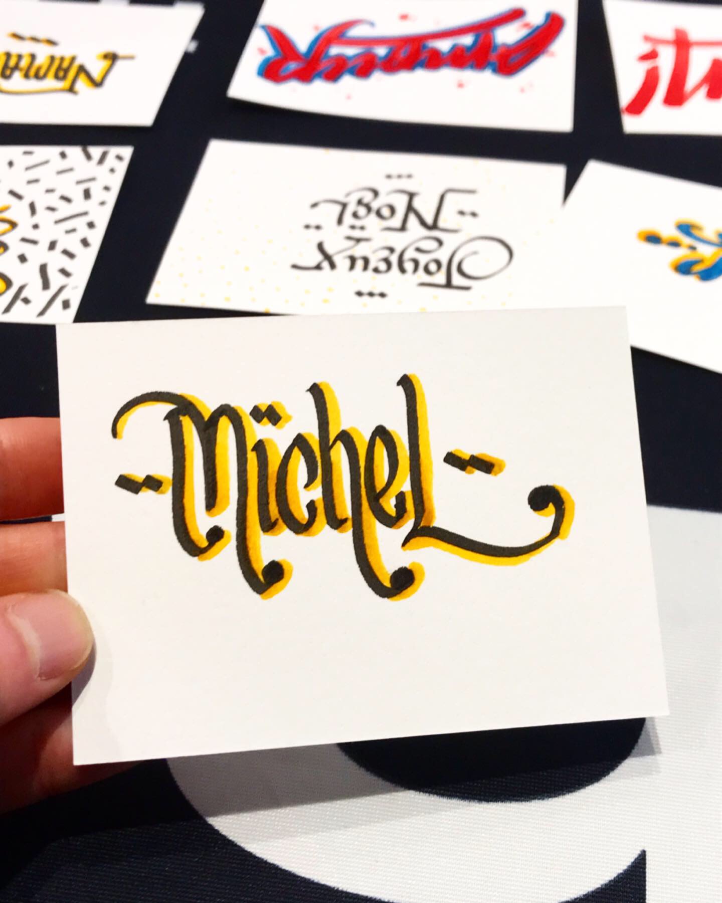 Created custom calligraphy at Fnac for customers looking to personalize their gifts. I ran a booth for two days, welcoming customers who were delighted to leave with their personalized items.